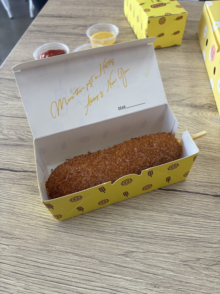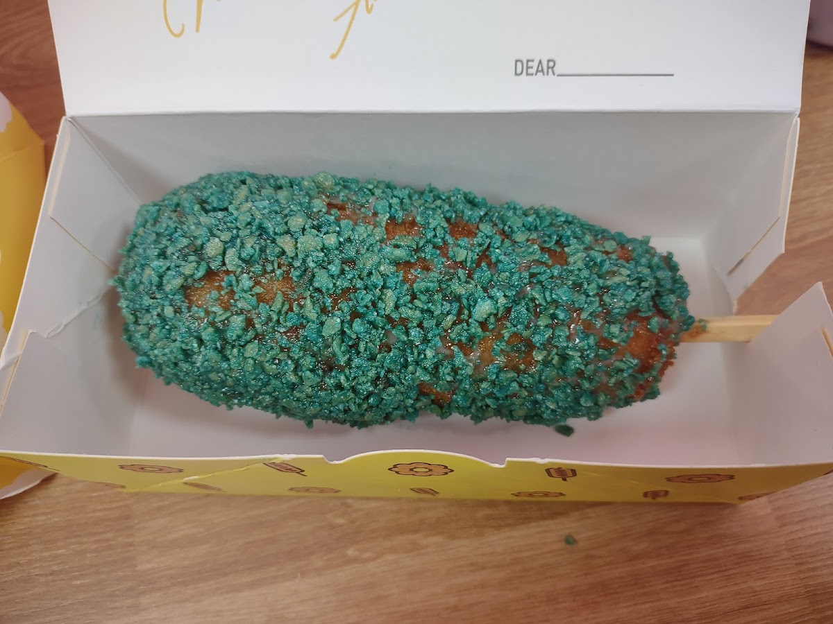 One of the standout items on their menu is the Mochinut Creme Brulee Fruity Pebbles. Imagine the creamy, custard-like filling of a crème brûlée, with a crispy outer layer and a sweet, crunchy topping of Fruity Pebbles. It’s a fun, colorful, and indulgent treat that combines the best of dessert and breakfast cereals. If you’re in the mood for something a bit more savory, the Blue Takis Corn Dog is a must-try. The tangy flavor of Takis mixed with the classic corn dog is an exciting blend of flavors that will leave your taste buds dancing.
