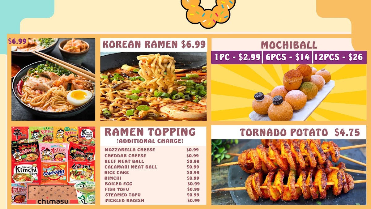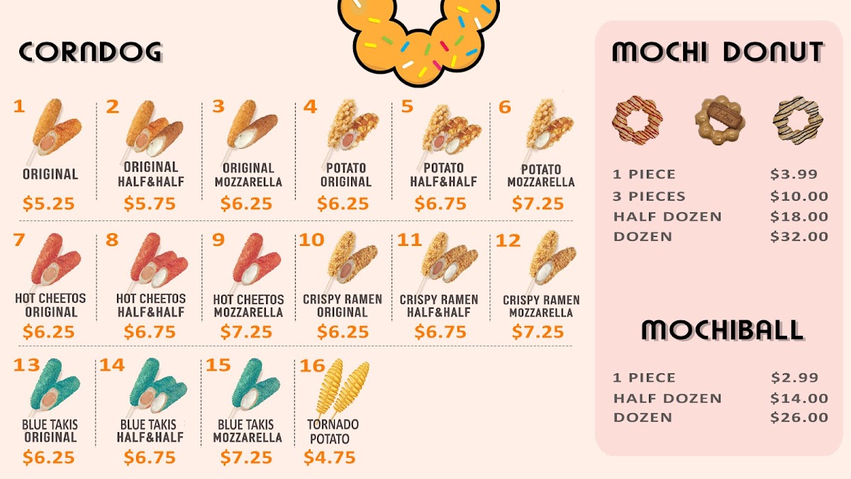 The menu at Mochinut Kalamazoo is a playful fusion of sweet and savory treats that truly caters to adventurous tastes. The standout Mochinuts Creme Brulee Fruity Pebbles and Funnel Cake is a decadent indulgence, combining the crisp exterior of a perfectly fried mochi donut with a creamy, custard-like filling and a vibrant crunch of Fruity Pebbles, offering both texture and nostalgia in every bite. On the savory side, the Blue Takis Corn Dog delivers a bold twist on a classic, featuring a crunchy, spicy coating that balances the juicy hot dog inside, making it an unforgettable snack that surprises the palate. Complementing these inventive dishes is the Milk Tea, which rounds out the menu with a smooth, subtly sweet beverage that pairs perfectly with both the dessert and savory offerings. The menu reflects a careful attention to flavor, presentation, and creativity, making Mochinut Kalamazoo not just a spot for a quick treat but a destination for those seeking unique, Instagram-worthy bites that satisfy both curiosity and cravings. Each dish feels thoughtfully crafted, with a mix of playful experimentation and comforting familiarity that leaves a lasting impression.